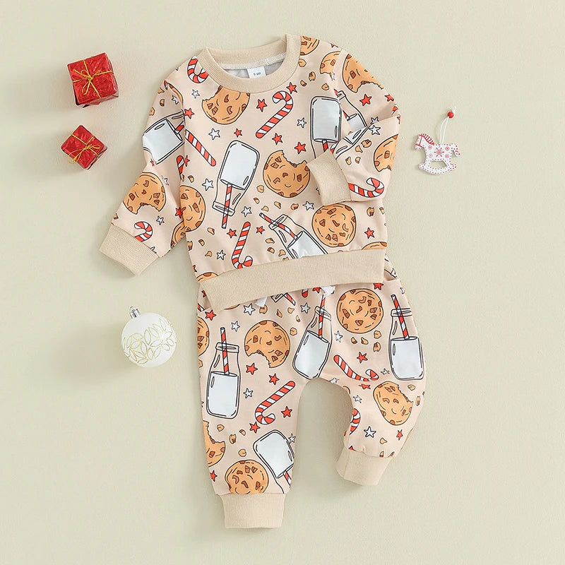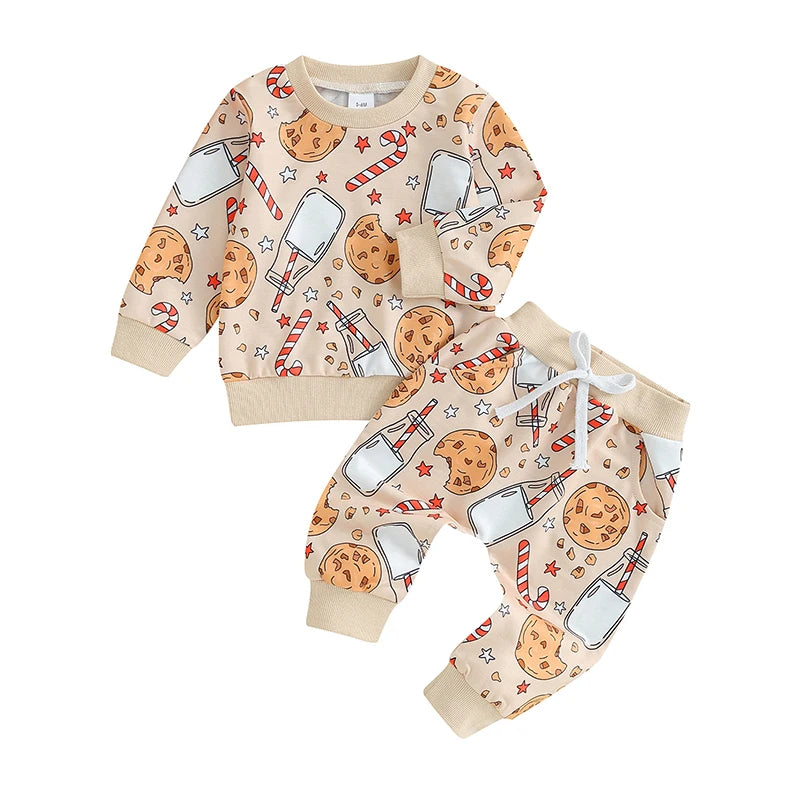 Christmas baby clothes, the cookie cane print adds a touch of fun to your baby's wardrobe, and the baby girl sweatshirt features long sleeves and a crew neck. Baby girl pants feature an elastic waist for easy fit, simple yet stylish.