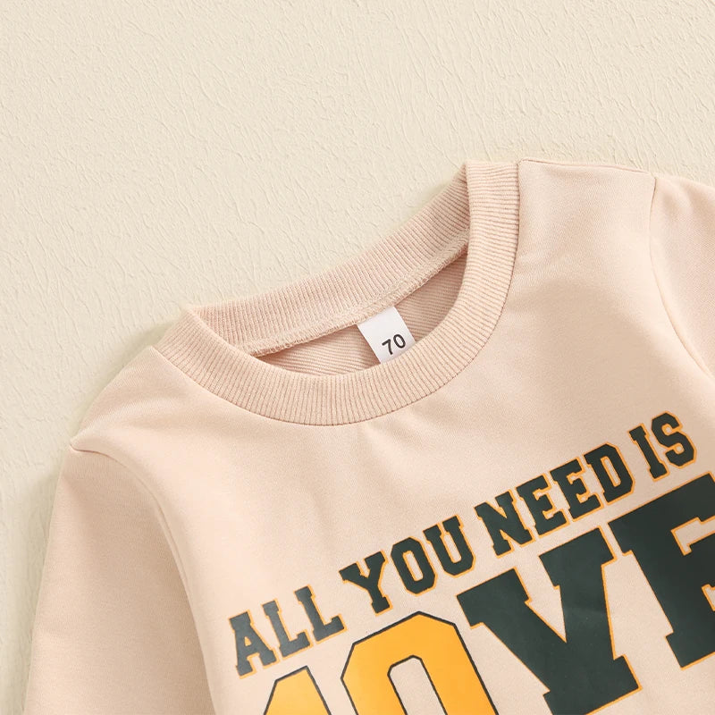 Letter Print Sweatshirt with Elastic Waist Pants
