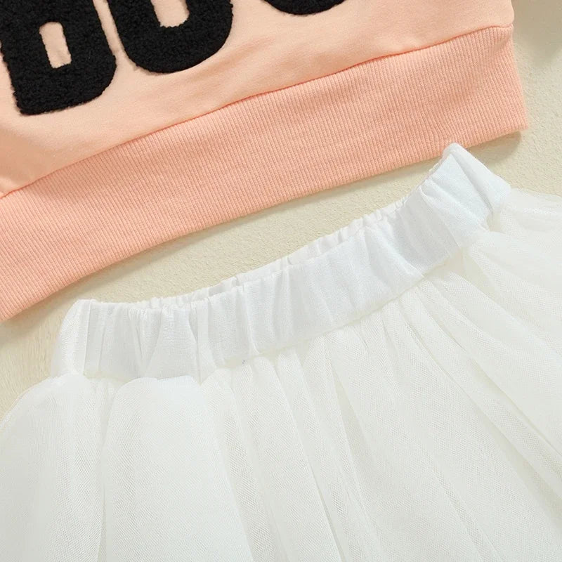 Long Sleeve Sweatshirt Elastic Waist Tulle Skirt
