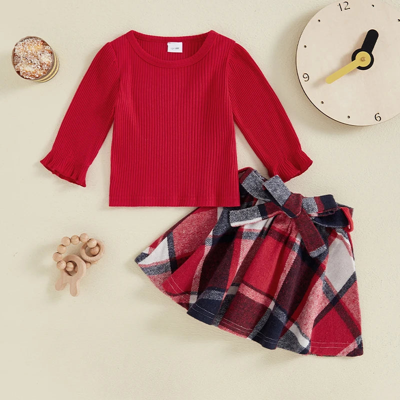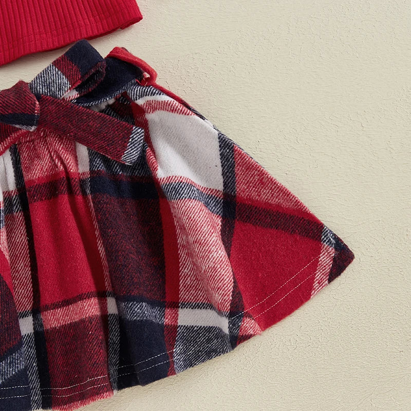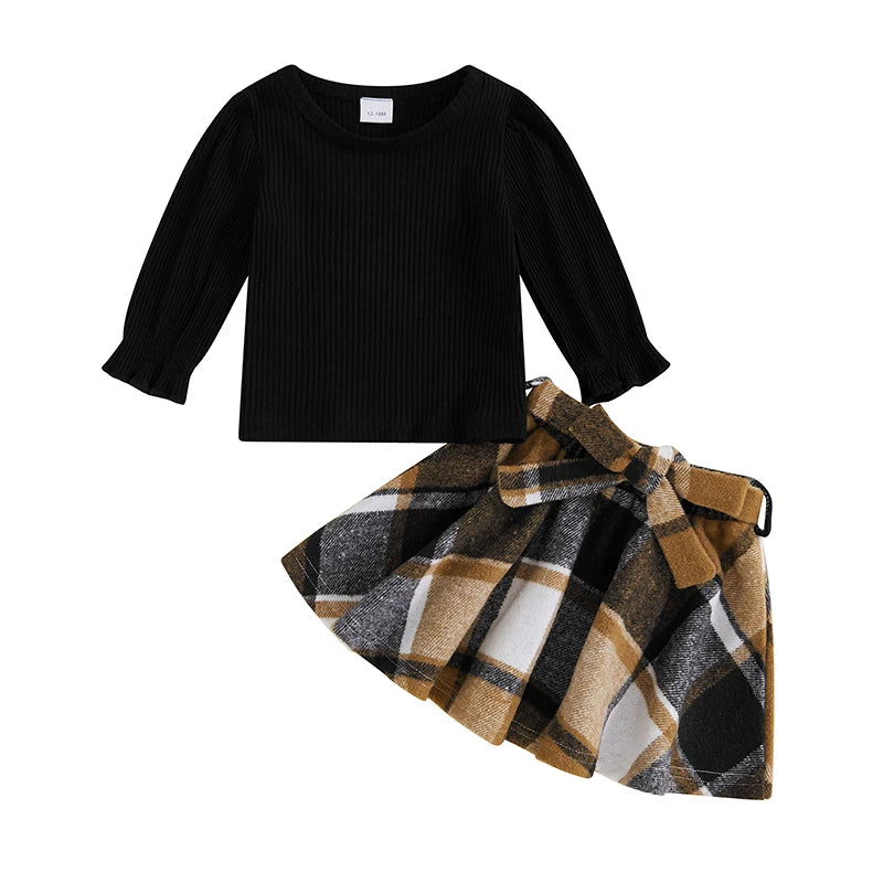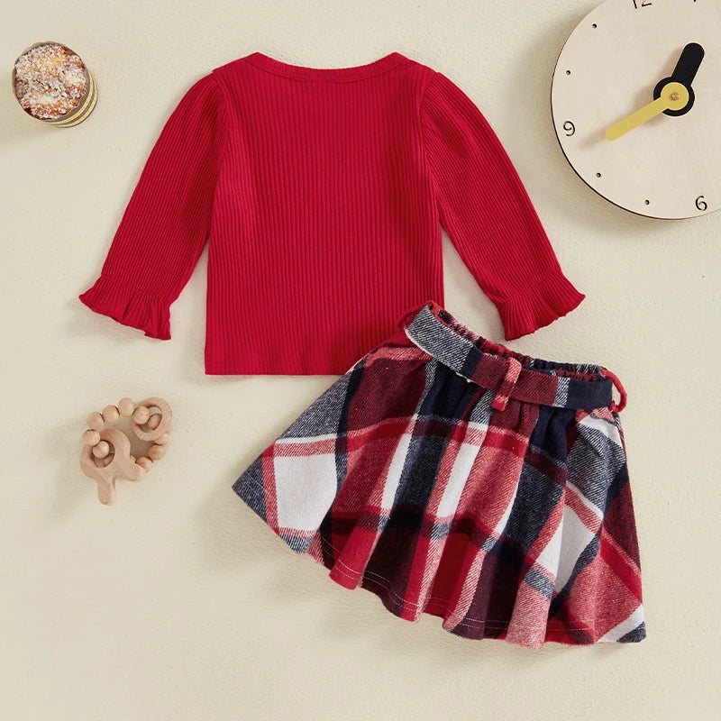 Plaid Print A-Line Skirt and Belt Set