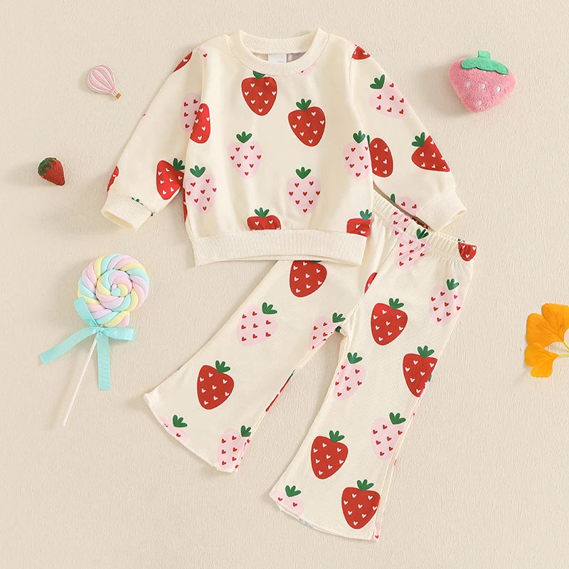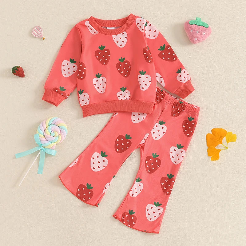 Strawberry Print Sweatshirt with Flare Pants